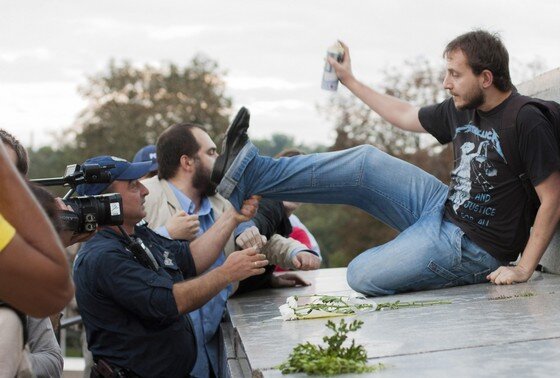 Неизвестные напали на палаточный городок защитников памятника Советской армии в Софии, сообщает местная газета «24 часа». По данным издания, несколько десятков молодых людей в масках забросали территорию палаточного городка петардами, а потом разбили тяжелыми предметами гранитную плиту самого монумента и разрисовали его подножие. Было задержано четыре человека. Газета напомнила, что в связи с решением о демонтаже памятник Советской армии круглосуточно охраняется добровольцами различных политических и общественных объединений. В Молдавии вандалы осквернили памятник, установленный в честь советских воинов в селе Корпач. Монумент посвящен выходу Красной армии на государственную границу в марте 1944 года. Злоумышленники написали ярко-зеленой краской на постаменте «Здесь прошли оккупанты». Кроме того, они изобразили символ профашистской партии «Железная гвардия», действовавшей в период между Первой и Второй мировыми войнами. За последние 10 лет памятник подвергался осквернению пять раз. Вин