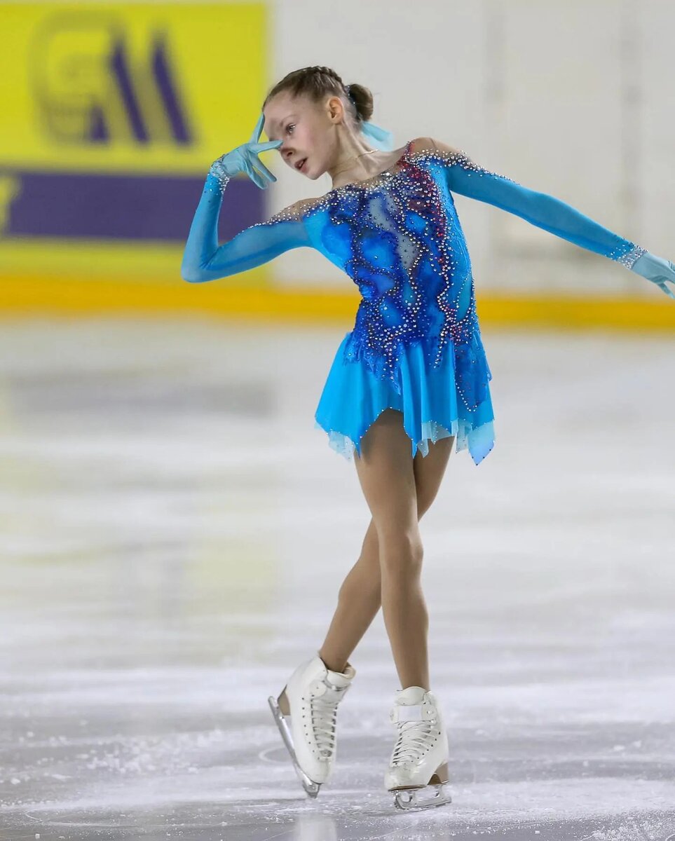 Елизавета Лабутина. Тренер Антон Киселев. Пыталась зайти на тройной аксель. Но недокрут на две галки и падение. Программа вроде бы и насыщенная. Но вот нет в ней никакого огонька.