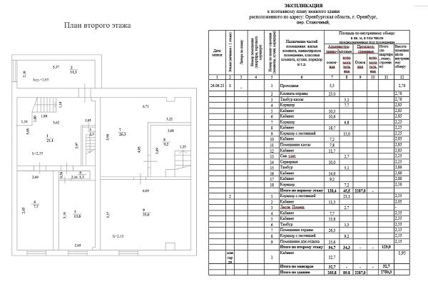 Экспликация — это дополнение к плану помещения, расшифровка информации об объекте, табличка с информацией обо всех комнатах в строении, с указанием метража, назначения и технических особенностей, она дополняет поэтажный план. Экспликацию оформляют с целью: Экспликация квартиры описывает все жилые и вспомогательные комнаты, которые есть в квартире (коридор, санузел, гостиная, спальня, кухня, балкон). Экспликация здания также содержит сведения о всех помещениях (коридор, кабинет, туалет), но каждый этаж считается отдельно и потом суммируется (смотрите рисунок 1). Ранее все записи велись вручную. Вы можете встретить, например, такую: Заказать экспликацию можно: в МФЦ или через Госуслуги (при личном обращении необходимо заявление, паспорт гражданина РФ, выписку из ЕГРН о праве собственности, чек-квитанцию об оплате услуг). Экспликация входит в кадастровый и технический паспорта, но её можно заказывать и отдельно. Что делать, если в выписке из ЕГРН отсутствует поэтажный план? Читайте в стат