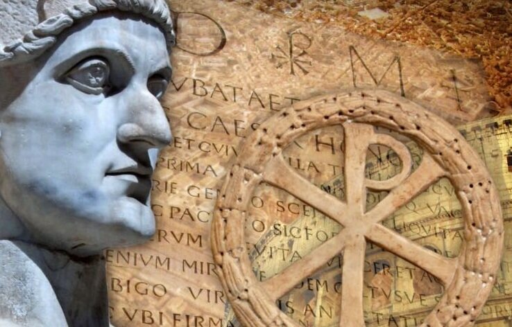 Во-первых, победа Константина под Римом в битве у Мульвийского моста (312 г.), в результате которой и возник Миланский эдикт, была связана с личным мистическим опытом Константина. Согласно преданию, накануне Константин увидел в небе крест и услышал голос, произносящий «Сим победиши» (Hocvince). После этого он приказал изготовить так называемый лабарум – императорский штандарт, который позже был уничтожен по приказу Юлиана Отступника.
