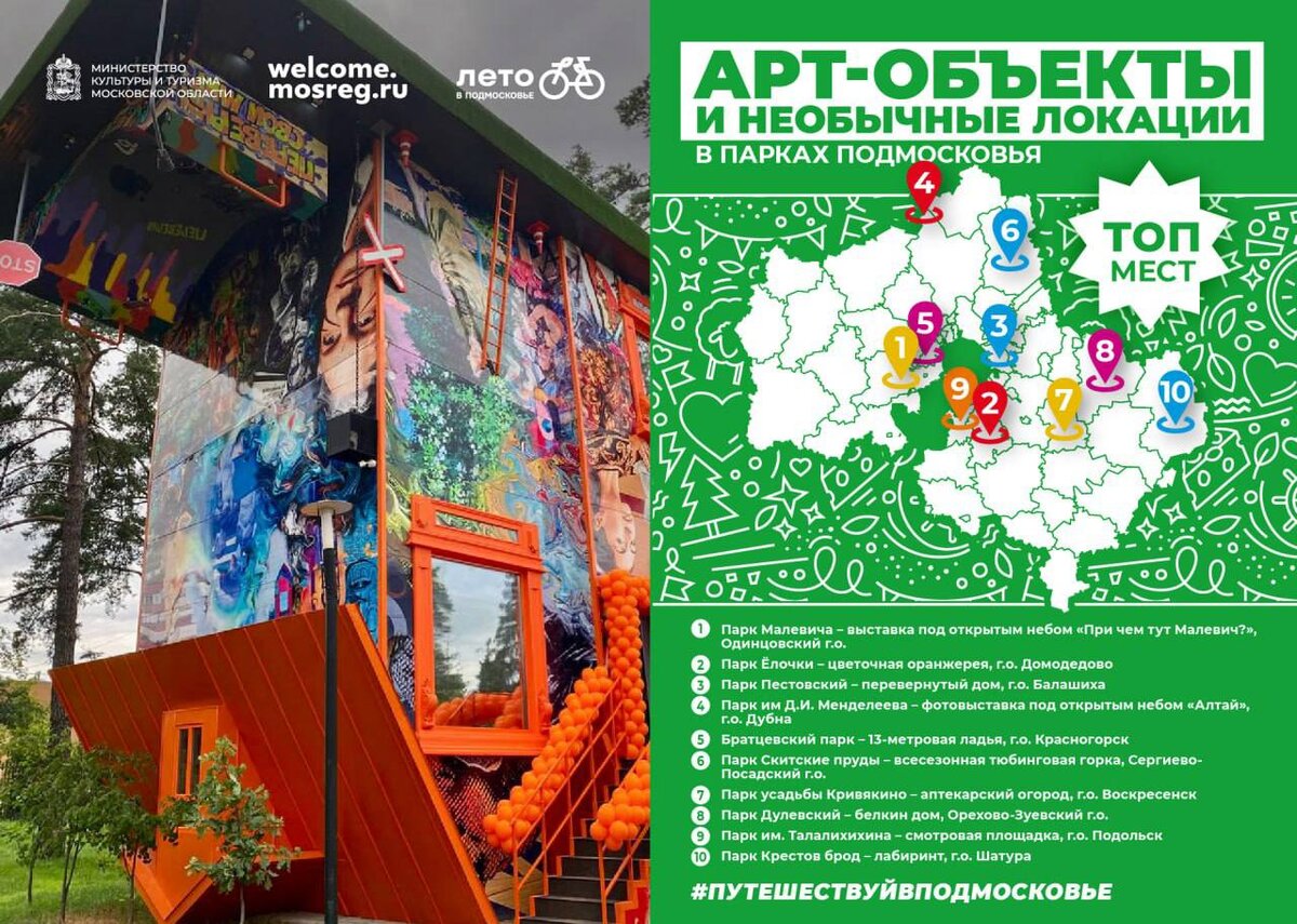В подмосковных парках вас ждут не только живописные места для фотосессий и прогулок, но и объекты современного искусства, лабиринты, всесезонные тюбинговые горки, цветочные оранжереи и многое другое. Министерство культуры и туризма Московской области подготовило для вас карту с самыми интересными арт-объектами и необычными локациями под открытым небом.