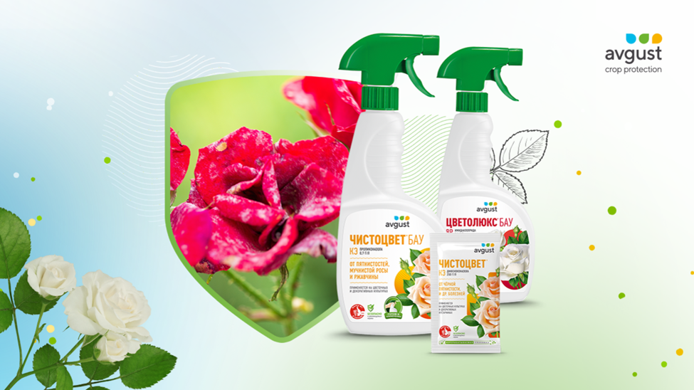 Вылечить пятнистости на розах вам помогут препараты «Чистоцвет» (концентрат эмульсии) и «Чистоцвет БАУ» (готовый к применению раствор во флаконе с курковым распылителем). Они созданы специально для цветочных и декоративных культур.