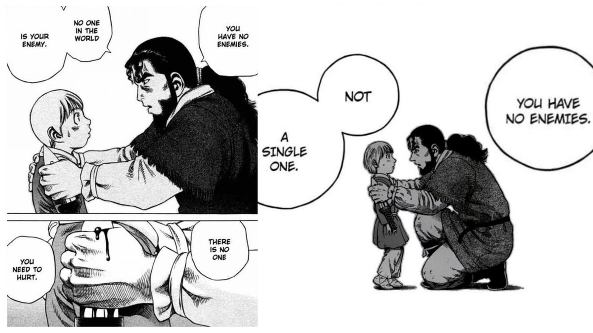 — «Сага о Винланде» отличается тонким подходом к повествованию, затрагивающим важные темы для взрослеющих подростков. Многие люди начинают читать сёнэн-мангу именно в юные годы, и она может быть более жестокой, чем ваша. Какой бы урок вам хотелось, чтобы читатели извлекли из «Саги»?
