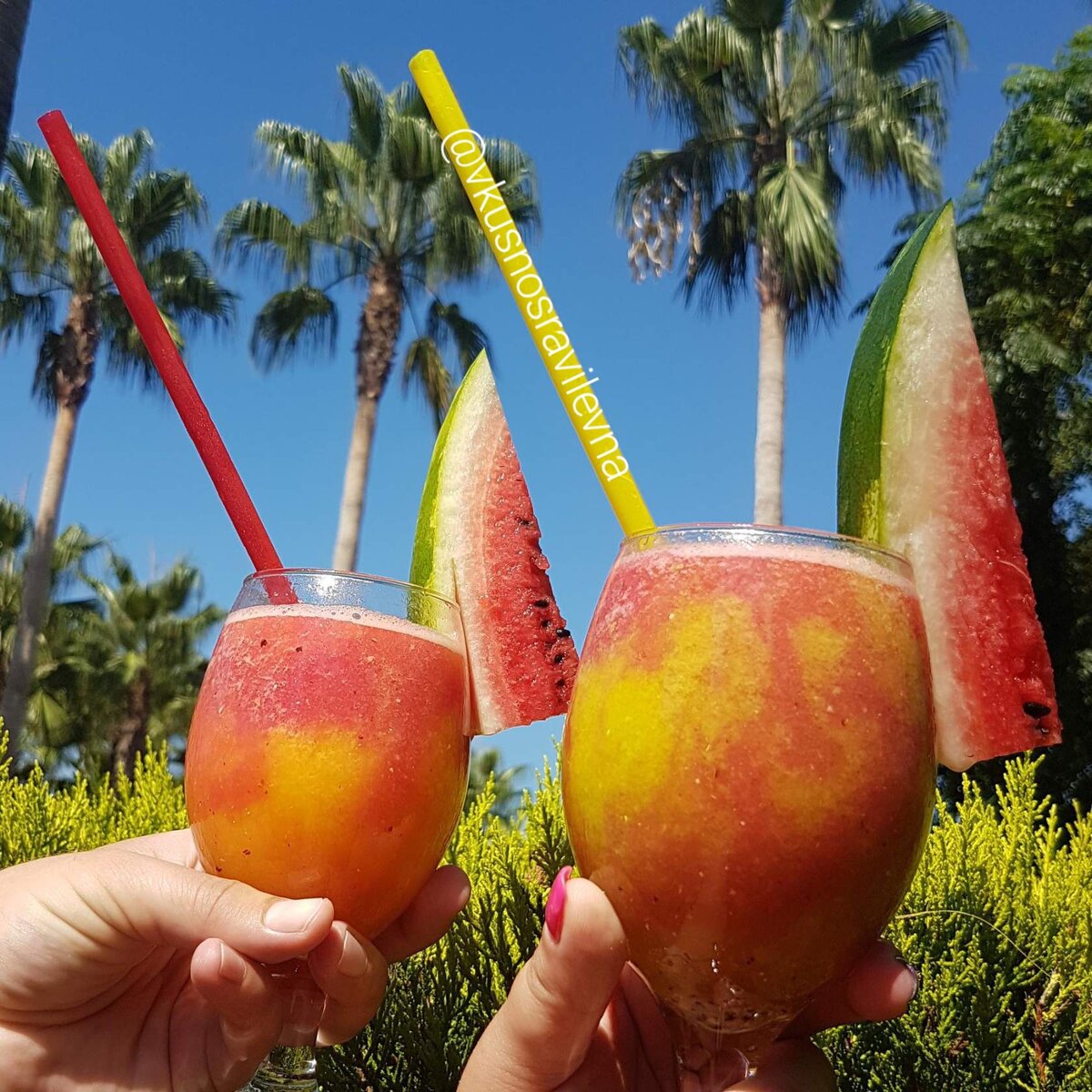 Освежающие и очень вкусные напитки👍 Приготовить элементарно👌 ДЛЯ СМУЗИ🍹 Арбуз мякоть без косточек 500гр.; Дыня мякоть без косточек 500гр.; Мёд 3 ст.л.; Сок лайма (лимона) 1 ст.л. ********* Режем мякоть арбуза и дыни на кубики (3*3 см.), замораживаем до затвердения (заморозка не сильная). Перекладываем кусочки в блендер, добавляем сок лайма/лимона, мёд и взбиваем до однородной консистенции. ********* ДЛЯ ЛИМОНАДА🍹 Арбуз мякоть без косточек 500гр.; Дыня мякоть без косточек 500гр.; Мёд 3 ст.л.; Сок лайма (лимона) 1 ст.л.; Мята две веточки; Минеральная газированная вода 1 литр.; Лед кубики (из расчета по 5 кубиков на стакан). ********** Мякоть арбуза и дыни перекладываем в блендер, добавляем сок лайма/лимона, мёд, мяту и взбиваем до однородной консистенции. Процеживаем через сито, разбавляем минеральной водой. В стакан выкладываем кубики льда, заливаем лимонадом. 📎Напитки можно подсластить по вкусу сахарной пудрой. Пробуйте рецепт👀, готовьте🍹, оставляйте комментарии💬, делитесь