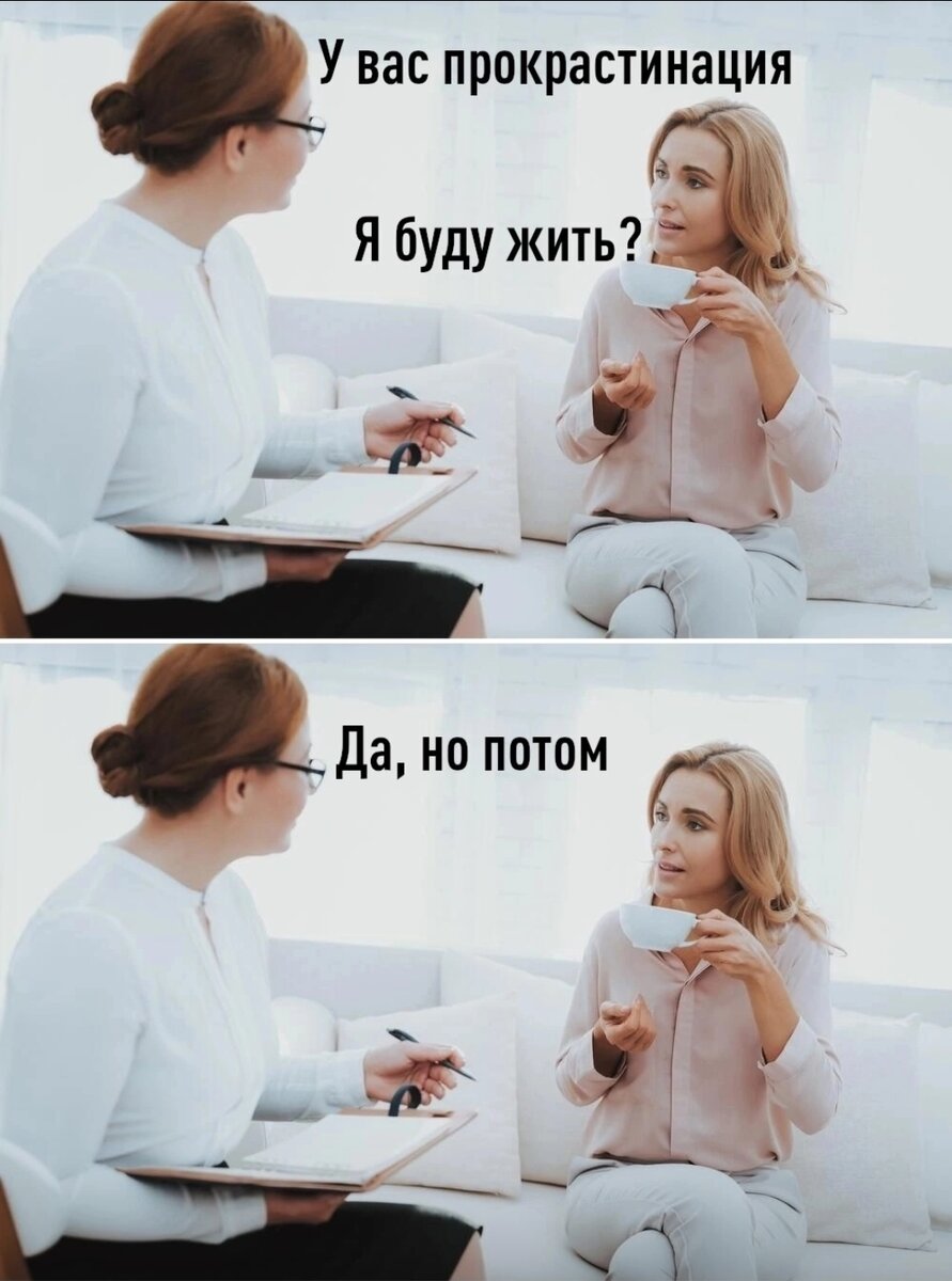 Всему свое время, каждый плод должен созреть. Что там еще, дом не достроили, денег не заработали, с целью жизненной не определились? Еще несколько лет, и займетесь-таки своим здоровьем, хобби, еще чем-то, а пока не до того. Ну хорошо, а если ваша жизнь закончится гораздо раньше, чем вы успеете все это сделать? Что за расточительство драгоценных лет такое? Еще что? Отдохнете, когда выйдете на пенсию, строить отношения будете, когда денег заработаете? Ой, да все это ерунда.