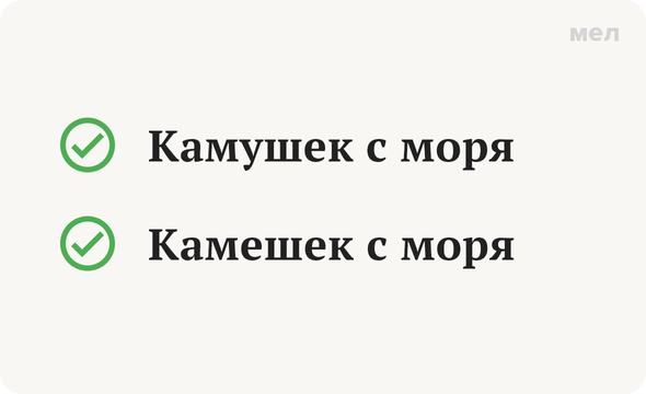 У кого-то это слово ассоциируется с бриллиантами, у кого-то — с морской галькой. Но и тем и другим полезно будет знать о правильном его написании. Правильно: камешек, камушек Вообще, изначально правильным с точки зрения литературного языка считалось слово «камешек»: камешешек на колечке, камешек «куриный бог», бросать камешки в реку. Вариант «камушек» словари предлагали как допустимый, но не книжный, а разговорный (некоторые справочники даже делали пометку «просторечный»). Сейчас же лингвисты пришли к тому, что оба варианта можно считать равноправными — об этом, например, пишут эксперты портала «Грамота.ру», отвечая на вопросы читателей о сложностях русского языка. Это же фиксируют и основные современные словари — «Орфографический», «Большой толковый» и «Словарь ударений». Ещё больше весёлых и полезных карточек о русском языке — в «Грамотности» на «Меле» во «ВКонтакте». Подписывайтесь, чтобы всегда говорить и писать правильно! Фото: Cavan-Images / Shutterstock / Fotodom