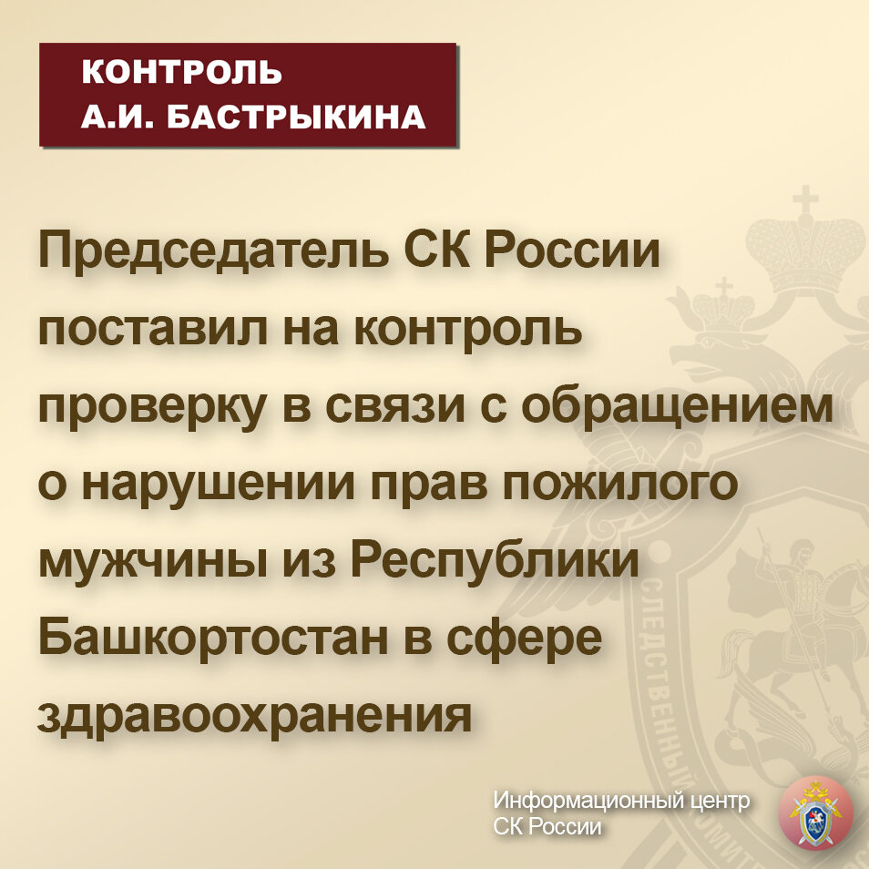 Председатель СК России поставил на контроль проверку в связи с обращением о нарушении прав пожилого мужчины из Республики Башкортостан в сфере здравоохранения