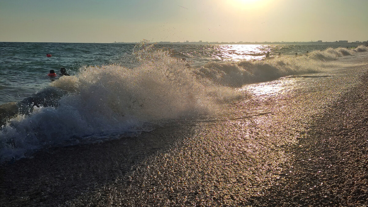 Сегодня на пляже по улице Симферопольская были волны но водичка теплая)) На море было много народу припарковаться было сложно. Что может некоторым понравится что пляж галечный и нет песка Классный вид открывается на Евпаторию Ещё один нюанс то что при входе в море через пару метров сразу глубоко, Следите за маленькими детьми. Здесь сосредоточены больше количество пляжей со всей необходимой инфраструктурой, кафе, бары, столовые и магазины. Есть зонтики, навесы, и всё необходимое для пляжного отдыха