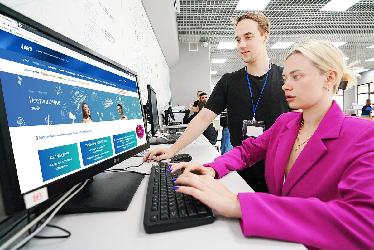 Настоящий студенческий десант высадился в этом году в приемной комиссии ВВГУ. Ребята вместе со специалистами университета встречают абитуриентов, помогают им подать документы, отвечают на вопросы по телефону или онлайн, консультируют и делятся личным опытом обучения. Студентка 1 курса Института физической культуры и спорта Амалия Пылаева рассказывает, что попала на работу в приемную комиссию случайно – заняла место другой студентки, которая отказалась. С понедельника по субботу Амалия вместе со студентом Института права Сергеем Деминым принимали звонки от абитуриентов и консультировали тех, кто приходил лично. - Помимо приема звонков я также помогала иностранцам: сопровождала их в Департамент международной и культурной деятельности, передавала информацию от специалистов. Также работала со списками абитуриентов, участвовавших во вступительных испытаниях. С трудностями столкнуться не пришлось, работа прошла легко и спокойно. Помогали студенты и абитуриентам, решившим лично принести докум
