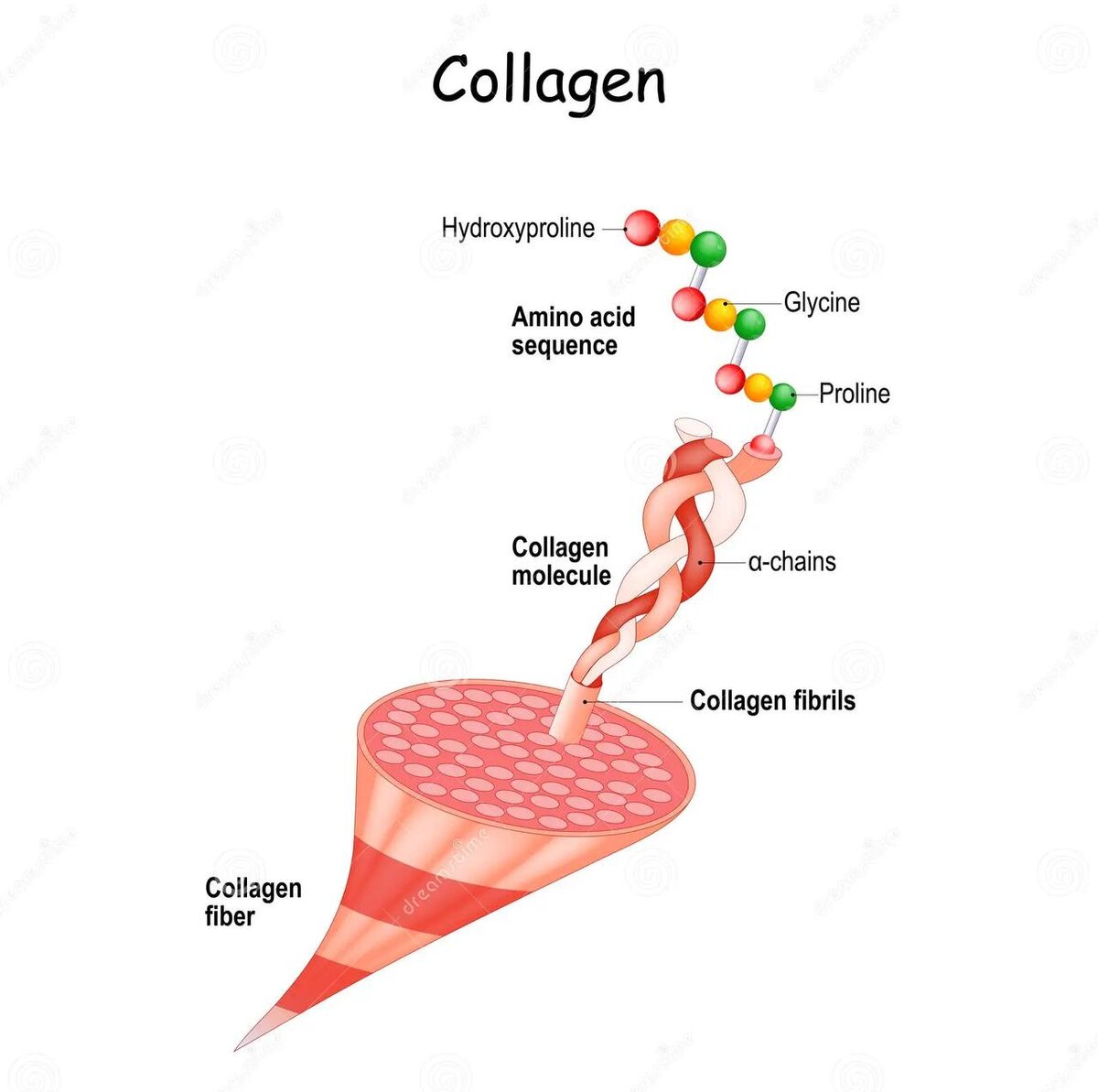 Говоря кратко, витамин С помогает “созревать” коллагену. Если вы хорошо помните уроки химии, то должны помнить о свойствах катализаторов в реакциях. Витамин С является катализатором в гидроксилировании аминокислот – делает их удобными для построения молекулы коллагена(см.фото). Дело в том, что пролин и лизин не могут встроится в цепочку молекулы коллагена и создать ее, а их гидроксислаты с этим отлично справляются. Поэтому витамин С буквально протаптывает дорожку аминокислотам для образования из них более большой молекулы, а впоследствии коллагенового волокна и всех тканей.