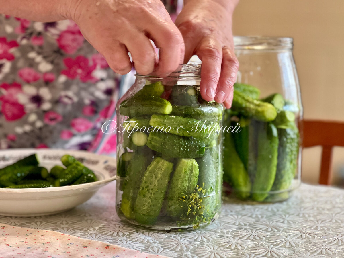 Из года в год готовим по этому рецепту и новых вариантов не ищем. Да и зачем? Для нас такие огурчики идеальны во всех отношениях! Привет, друзья! Вы на канале «Просто с Марией», и сегодня я хочу поделиться с вами проверенным рецептом домашних маринованных огурцов, которые можно заготовить без использования уксуса. Нет, мы не имеем ничего против уксуса)) С уксусом тоже делаем, и пару лет назад я уже делилась рецептом огурцов от моей свекрови. Сегодня другой вариант, который мы тоже очень любим. Огурчики по этому рецепту получаются хрустящими, остренькими и необыкновенно вкусными! Если вы любите именно маринованные огурцы, но этот рецепт для вас в новинку — смело пробуйте. Ну, а те кто уже готовил, наверняка согласятся, что рецепт стоящий)) Приступаем к приготовлению • Пропорции указываю из расчёта на трёхлитровую банку (или, как у меня, 2 банки по 1,5 л) Полный список ингредиентов можно посмотреть в первом комментарии под рецептом На дно стерилизованных банок кладём зонтики укропа