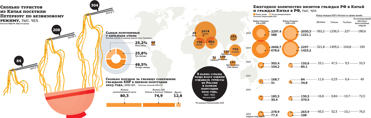 По оценкам Минэкономразвития, по итогам текущего года въездной поток в РФ китайских туристов может вырасти до 10 млн человек. В Российском союзе туриндустрии (РСТ) накануне сообщили, что первая группа китайских туристов уже оформляется и прибудет в Россию на наступившей неделе. Как рассказали в пресс–службе туроператора "Интурист", группы с материкового Китая и так активно едут в Петербург, но для их въезда оформляются визы. Китайский туризм до пандемии был весьма сомнителен с точки зрения доходности для принимающей стороны, так как значительная часть расходов делалась гостями из Поднебесной через китайские платёжные системы и деньги оставались на счетах за Великой стеной.