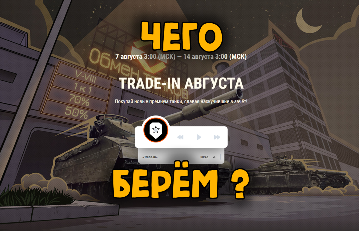 Сегодня у нас понедельник, 7 августа, стартанул Trade-inn который продлится до 14 августа 3:00 по МСК, неделю в общем. Лично я очень рад ему, так как собралось пару танчиков, которые я хотел бы сдать, тем более без переплаты за золото, это польский ЛИС и ЛТ-432.