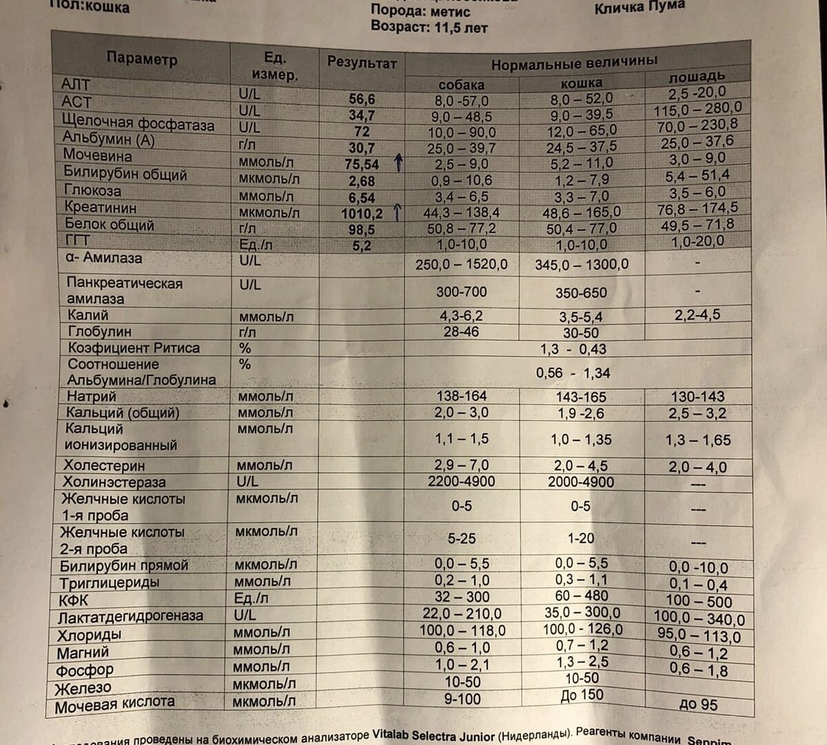 Время неумолимо бежит вперед, дочь растет, кошки взрослеют…на дворе лето 2020 года и вдруг как гром среди ясного Пуму начинает тошнить и не разово, а в течении дня… Кошку в охапку и к ветеринару. Ветеринар собирает анамнез и решает брать анализы. Пума отказывается от еды, ей всего 11.5 лет. На следующий день анализы готовы и вердикт врача был неутешительный. Почечная недостаточность. Мочевина и креатинин зашкаливают. Шансов нет. Вы можете меня осуждать, но мы всей семьей приняли решение не мучать ее, а за эти 3 дня кошка стала как скелет… Решили домой вызвать врача который может прекратить эти мучения. Приехал очень приятный мужчина, поговорил с нами, посмотрел анализы, осмотрел кошку и тоже подтвердил что шансов нет… Так с нами не стало нашей Пумы. Я все же думаю, что кошки которые лечат много берут на себя и в себя, по этому и «сгорают» быстрее… Нам стало не хватать черной кошки и в голове появились некоторые мысли и мы с мужем поняли друг друга без слов, но поговорили о