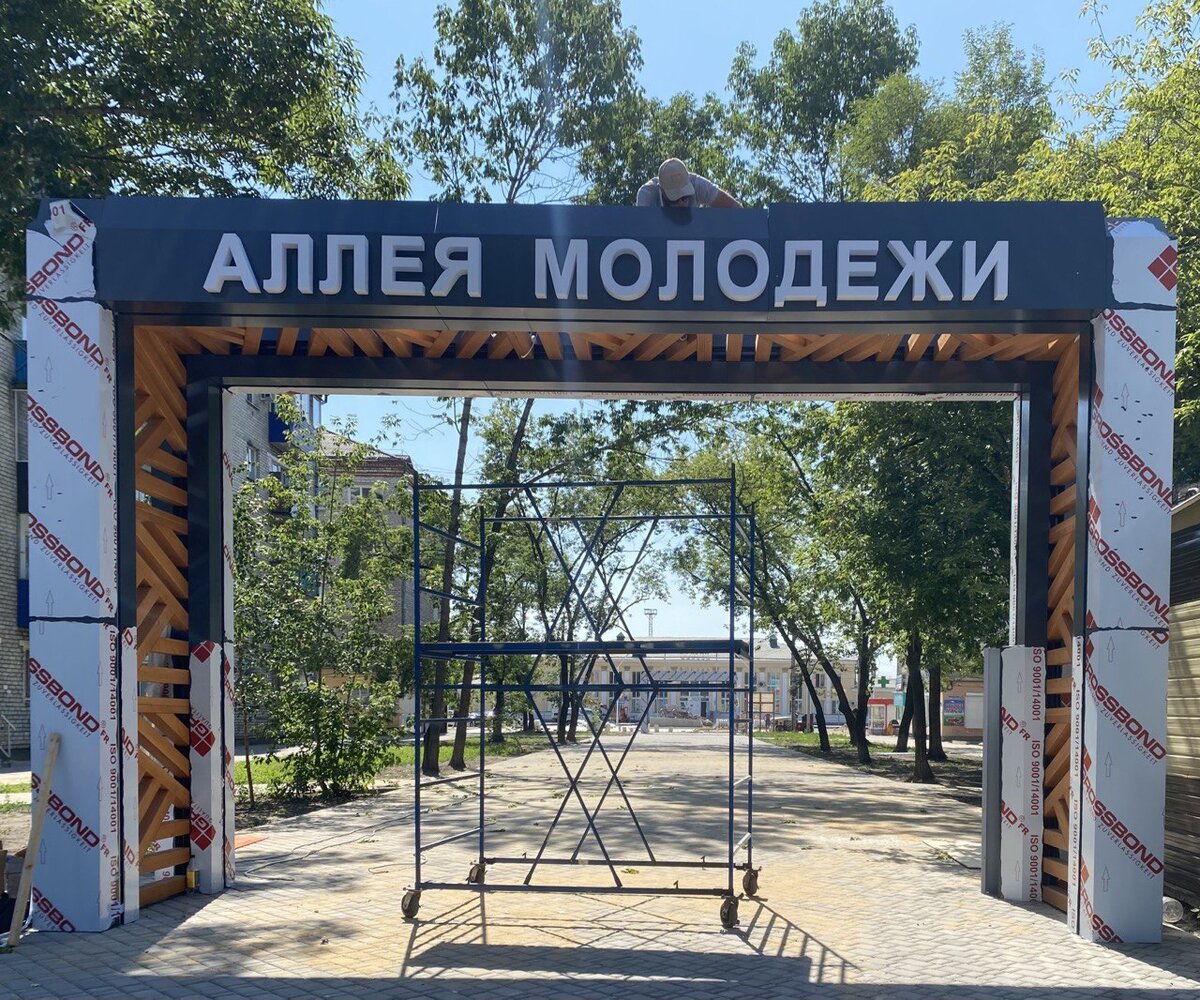 Входные арки, выполненные в экостиле, установили на Аллее Молодежи в Белогорске. Конструкции с названием общественного пространства будут оборудованы подсветкой. Сейчас подрядчик выполняет монтаж электрооборудования.