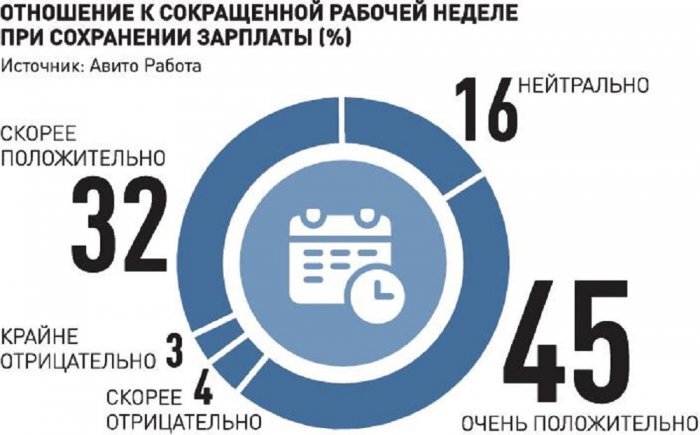 Согласно опросам, в целом идея работать четыре дня в неделю становится все популярнее в России: согласно данным «Авито Работа», ее поддерживает 76% россиян. Что касается Новосибирска, то сокращения рабочих дней поддержали 51% горожан, тогда как против высказались лишь 28% (согласно опросу SuperJob). Исследователи отмечают, что среди молодого поколения сторонников сокращения рабочей недели больше (56%), чем среди представителей старшего поколения (36%). Чаще всего Новосибирцы желают потратить дополнительный свободный день «на семью, отдых и саморазвитие», — но с сохранением заработной платы. О возможном переходе на четырехдневную рабочую неделю в XXI веке впервые публично высказался премьер Дмитрий Медведев, выступая на 108-й сессии Международной конференции труда в Женеве в июне 2019 года. Не так давно вариант сокращения рабочих часов в неделю предложила член Комитета Госдумы по труду, социальной политике и делам ветеранов Светлана Бессараб: по ее мнению, пятницу следует сделать коротк
