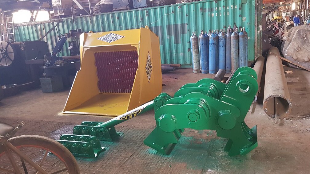 Он не может работать неэффективно, потому что спроектирован и произведён на предприятии ВОЕННАЯ ИНЖЕНЕРИЯ. У коллектива завода внушительный опыт в сфере изготовления разнообразных сменных инструментов для СДМ. Не меньший опыт у нас и в сфере ремонта навесного и рабочего оборудования дорожных, строительных и грузоподъёмных машин. Изучение практики применения сменных инструментов позволяет нам создавать эффективные устройства. Например, просеивающие валковые дробильные ковши «ЧебуRUSSIA». Мы выпускаем модификации, которые функционируют в одном или двух режимах. Основной рабочий профиль данного навесного оборудования – просеивание и смешивание грунтов и материалов (песок, торф, уголь, мусор, глина и т.д.). Однако завод выпускает ковши «ЧебуRUSSIA» с приводом, позволяющим менять направление вращения валов с «лепестками», что обеспечивает использование изделия для измельчения мёрзлого грунта и некоторых материалов (стекла, мела, известняка и т.д.). Для изготовления рабочих элементов с