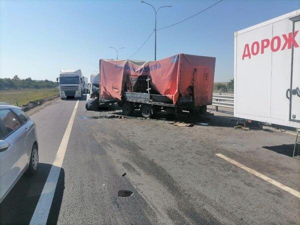 По предварительным данным, водитель микроавтобуса «Фиат Дукато» проезжал неподалеку от села Плесновка. В районе 768-го километра автодороги он зазевался и врезался в прицеп стоящего грузовика «ГАЗон Некст». От столкновения переднюю часть «Фиата» смяло, как консервную банку.