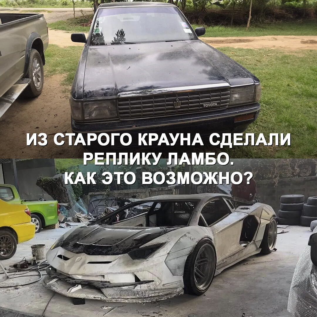 У этих моделей на удивление близкие колёсные базы 😃 Донор проекта — Краун 1987 года, длина колёсной базы — 2 730 мм, у оригинального Aventador — 2 700 мм. Тойоту лишили кузова, на его место установили стальную раму, в задней части — V6 2,5 л от Mitsubishi Galant, доработанный турбиной. В системе охлаждения радиатор от пикапа Isuzu, в подвеске элементы от Toyota Hilux и Honda Accord, тормоза от BMW 7-Series, дверной механизм от Nissan NX-Coupe. Снаружи на металлический каркас установлены кузовные элементы, детально повторяющие все особенности итальянского суперкара, включая воздухозаборники и сплиттеры. Пока сборка находится на финальной стадии. Общий бюджет проекта — около $11 000. Как оцените работу? #дромновость #таиланд #реплика #lamborghini #crown