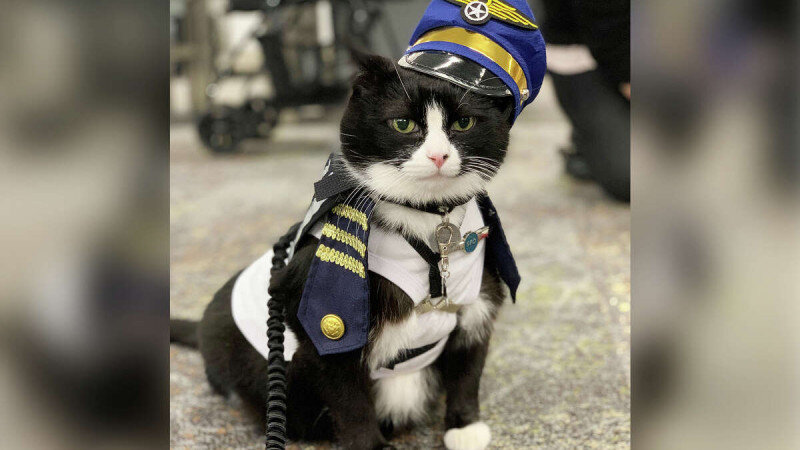 Сразу и не скажешь, что этот счастливый 14-летний котяра был когда-то бездомным и несчастным бродягой. Кота по кличке Дюк привезли в приют в 2010 году. Там-то его и увидела маленькая девочка, которая упросила родителей взять милого котика к себе. Так и сделали. Кстати, котика назвали в честь знаменитого джазового музыканта Дюка Элингтона. Причем сам кот оказался вполне воспитанным и на удивление добрым малым. Он на протяжении 10 лет посещал больницы, где успокаивал тяжелобольных людей. А теперь его взяли на работу в аэропорт с этой же целью: успокаивать взволнованных пассажиров и помогать им коротать время до рейса. Нередко пассажиры переживают и сильно нервничают перед полётом, а взять себя в руки не всегда могут без посторонней помощи. Зная, что лучшие психотерапевты — это животные, администрация аэропорта города Сан-Франциско приняла решения о найме необычной бригады, так называемого «хвостатого патруля» (Wag brigade), который будет курсировать по аэропорту и успокаивать пассажиров