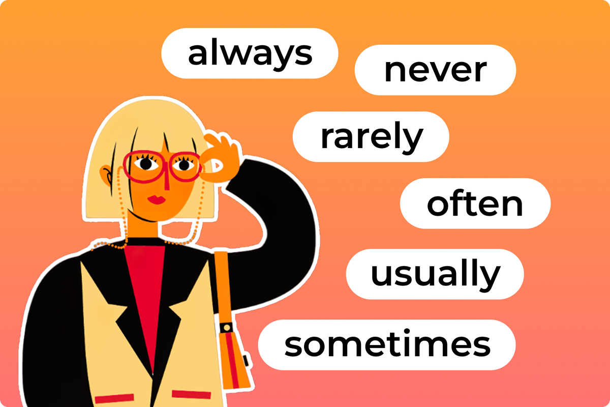 Маркеры времени — это слова и выражения, которые выступают своеобразными подсказками и указывают только на одно время. Маркерами времени Present Simple выступают наречия частотности (Adverbs of frequency):