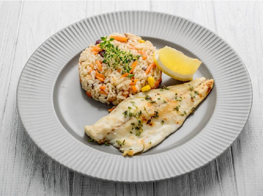 Цитрусовое жаркое из сома с рисом по-костарикански и черной фасолью