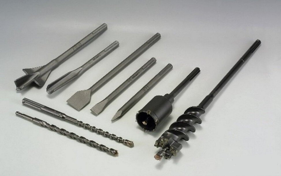 Основная оснастка для этого инструмента – бур. Однако предлагают к перфораторам и ряд других полезных приспособлений. Каковы они и какие задачи решают?