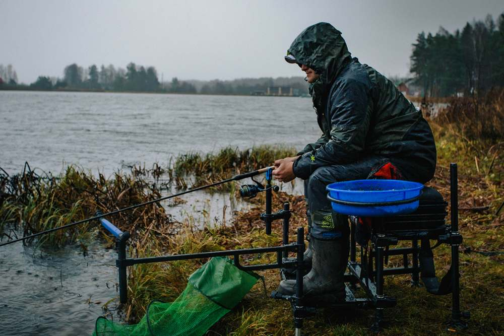 В плане комфортной рыбалки фидеристы, наравне с поплавочниками, находятся в максимально выгодных условиях. Как только начинается дождь - мы можем расставить зонт и полностью защитить себя от осадков и ветра. Лучшие зонты имеют купол диаметром от 2 метров, а потому весьма неплохо защищают не только самого рыболова, но также и его снарягу, сохраняя в сухости и снасти, и прикормку с наживкой даже в сильный ливень.