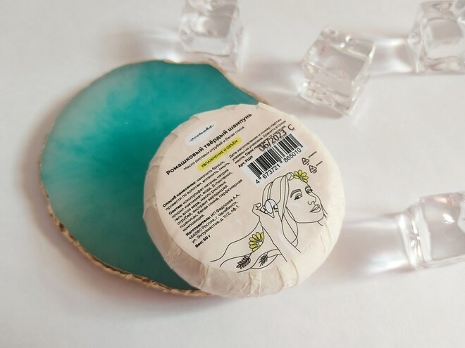 Здравствуйте. Шампуни в твердом виде я пробовала давно и не самого лучшего качества. С тех пор как-то избегала их. Но в последние годы я просто подсела на натуральную косметику. Поэтому решила попробовать натуральный ромашковый шампунь от Ecomake. Внешний вид Начну с того, что купить этот шампунь можно в двух видах. В алюминиевой баночке и в бумаге. Как вы поняли, у меня второй вариант. Брусок аккуратно завернут в тишью и запакован при помощи наклейки. На ней же и вся основная информация. Открывается шампунь очень легко. Но хранить его в этой бумаге, конечно же, не получится. Для меня это него проблема, так как давно уже хотела купить мыльницу побольше. Сам по себе шампунь ровный и твёрдый. Не гладкий, но спрессован хорошо. А ещё в нём поблескивают какие-то кристаллы. Запах и консистенция Шампунь почти ничем него пахнет. Я ощущаю только очень нежный, почти невесомый аромат. На волосах он также него остаётся. Пена у него очень нежная и плотная. Я бы даже сказала, густая. Воды ему тоже н