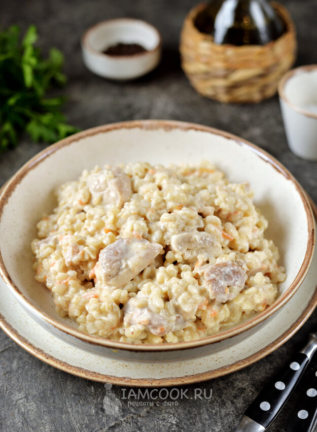 Булгур, как массовое явление появился на полках магазинов относительно недавно и уже успел завоевать доверие сторонников правильного питания и не только. Как и гречка, и рис, булгур отлично сочетается с мясом и из него можно приготовить массу вкусных блюд. Недавно мы собрали большую подборку с рецептами из булгура и мяса на нашем сайте, и выбрав несколько рецептов из нее делимся с вами... -------- Булгур с курицей в сливочном соусе Открыть рецепт >> -------