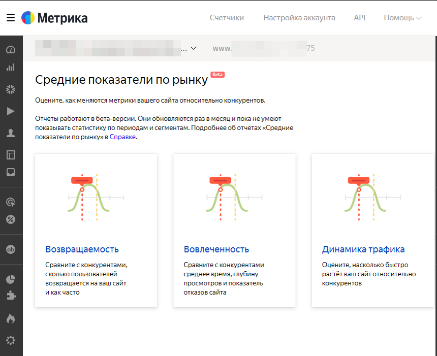 Теперь получить ответ стало проще! В Яндекс Метрике появилась новая группа отчётов «Средние показатели по рынку» (пока в бета-режиме). Эти инструменты позволяют сравнить показатели вашего сайта со средними показателями в вашей нише, выявить потенциал роста, адаптировать стратегию и получить объективное представление о состоянии рынка. Доступны три отчета