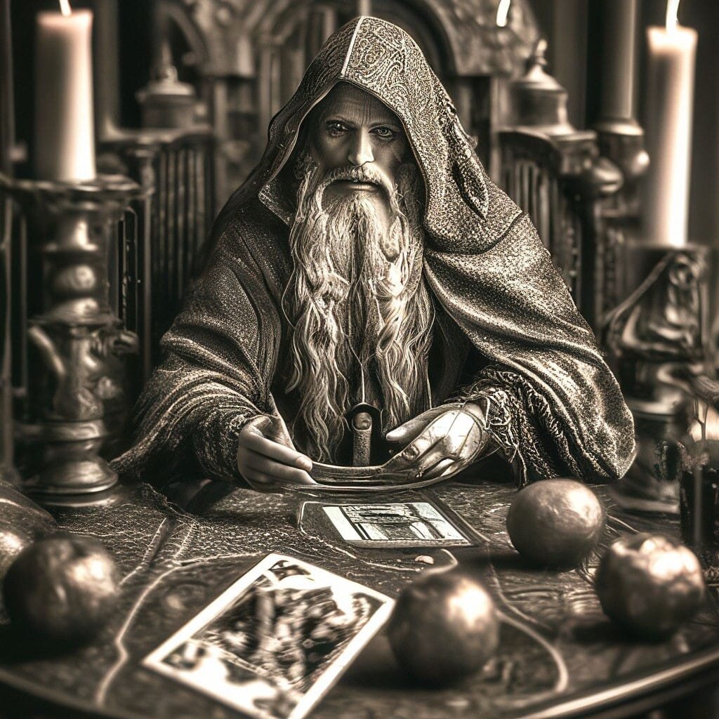 Затем женщина останавливается и тут же я слышу крик от Кроули: "Не пускай его сюда! Не пускай! Он не дорос еще до этого уровня! Не пускай его, не пускай!"(Речь про эзотерику, а именно таро Тота). Что касаемо голоса мужчины, то однозначно могу сказать что это голос Кроули, точно такой же звонкий какой и был у Алистера при жизни. А затем они оба начинают растворяться точно также как и появились.
