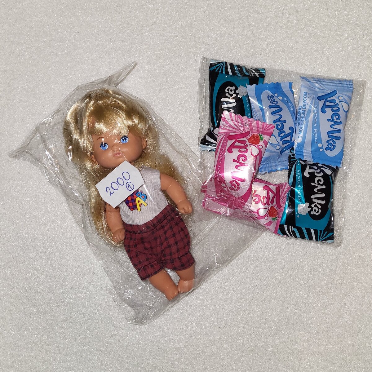 Среди моих «решила» есть пунктик поселить в своей «Так себе коллекции» всех малышей от фирмы «Mattel» периода 90-х и начала 2000-х, по одной «штуке» разного размера. В прошлом году ко мне приехали три малыша, среди которых был малыш Роузбад (о нём я рассказывала тут). Мальчик это хорошо, но захотелось и девочку. «Жаба» держалась тринадцать месяцев, а потом сдалась. Малышка приехала из Питера, и вкусняшки привезла. Она классная, очень тискательная. Волосы шикарные! В общем, в детсадовской группе внеплановое пополнение случилось:).