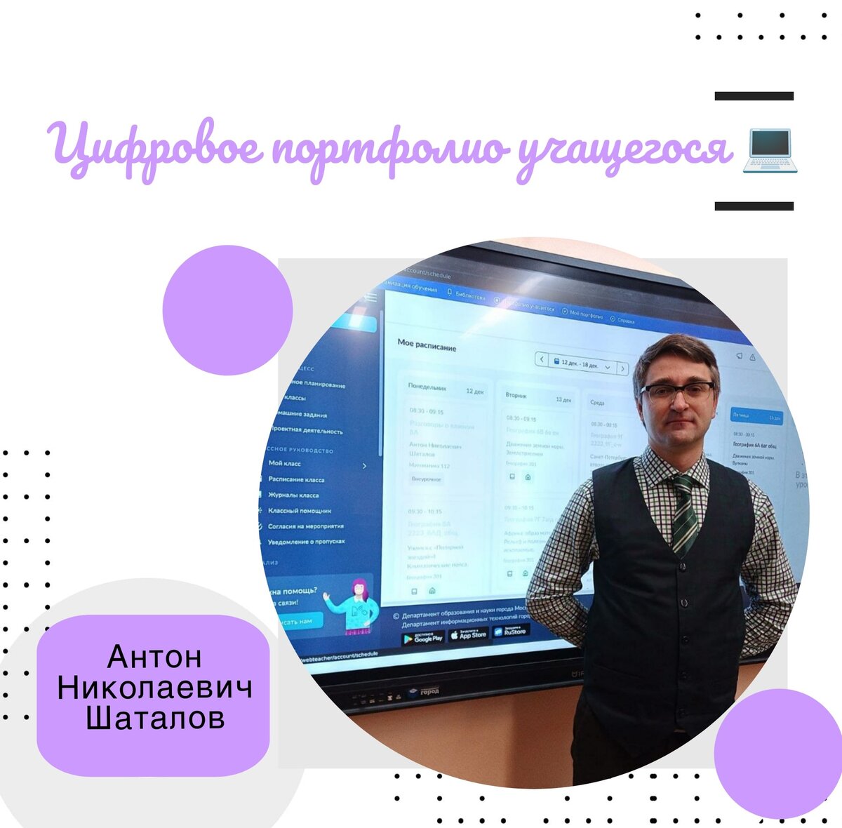 Антон Николаевич Шаталов, учитель географии, продолжает экскурс в мир цифровых технологий. 👩🎓👨🎓👩🎓👨🎓👩🎓 Мы продолжаем знакомиться с цифровыми сервисами, в частности поговорим о цифровом портфолио учащегося. Тестирование системы электронного портфолио в МЭШ началось в прошлом году. Предполагается, что наиболее активно как сервис она будет развиваться в ближайшие 5 лет, то есть нынешние семиклассники в моменту выпуска уже будут иметь полноценное портфолио. По задумке авторов, вузы могут начать учитывать данные из цифровых портфолио при поступлении в вуз вместе с результатами ЕГЭ. А также портфолио поможет выстроить для его владельца наиболее подходящую образовательную траекторию. Грамоты, дипломы и сертификаты легко будет показать при поступлении в новую школу или в профильный лагерь, где есть конкурсный отбор. Как будет работать портфолио? Вместо привычных грамот, лежащих дома, информация обо всех достижениях учащегося будет храниться в одном аккаунте. Создаст портфолио