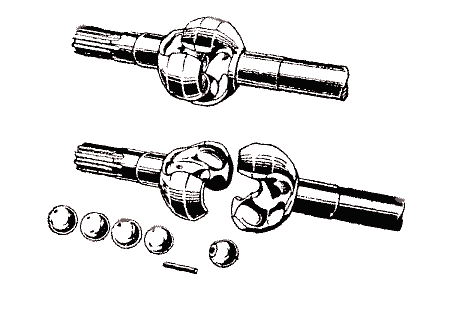 Строго говоря, это не ШРУС, а карданная крестовина с большим шариком, в пазах которого находятся вилки. Она по всем параметрам уступает шарнирам поворотного кулака: меньше угол поворота, больше изнашиваемость.