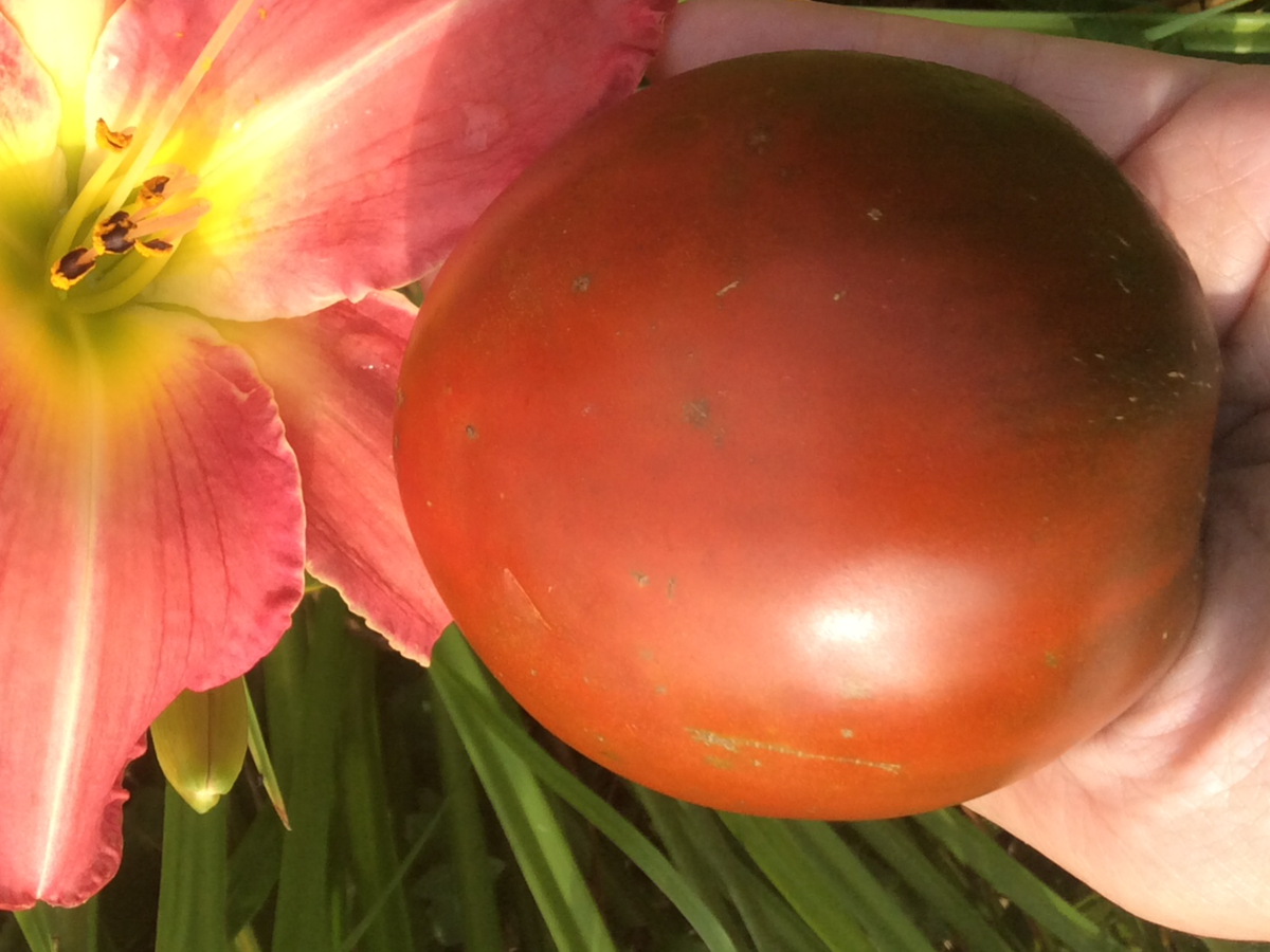 Приветствую читателей! Наконец то дождалась крупноплодного томата с шоколадной окраской. Весной, прочитав на упаковке, что он средне-позднеспелый, сомневалась сеять его или нет. Решила рискнуть. В этом году по одному растению от сорта выращиваю. (Есть исключения, которые по два.) Даже если какой то сорт не вырастет будет не большая потеря. Семена у меня были вот такие. Красивая картинка на упаковке. Вес помидора нормальный и куст не очень высокий. Ну как не купить? Купила. В этом сезоне томаты растут у меня с минимальным уходом. Высадила 12 мая под низкие дуги с лутрасилом без подвязки полулёжа. Хотела подвязать к опорам, но так и не смогла. Сформировала в два стебля. Поливала при необходимости и немного подкармливала, один раз от фитофторы обработала. Вот и вся забота. Ну ещё укрытие утром, когда погода жаркая, снять, а вечером укрыть. При таком выращивании я удивлена, что помидор дал достаточно крупные плоды. Про урожайность писать не буду. Она у меня так себе... В этом год