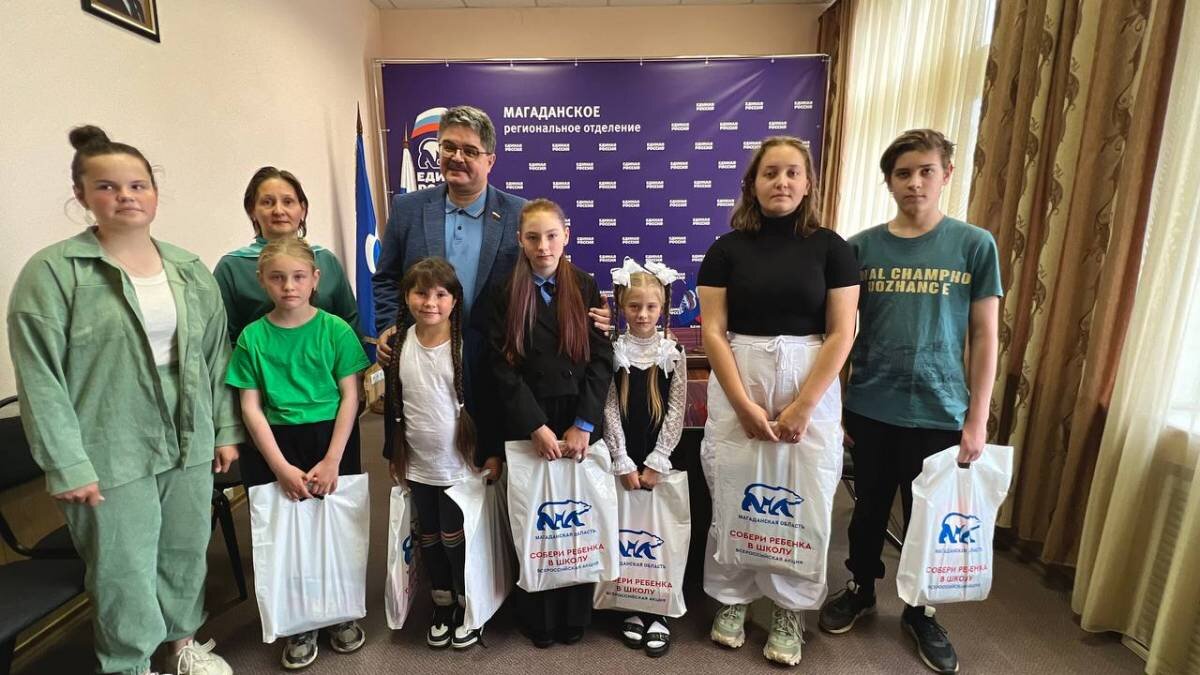 К партийной акции присоединился сенатор РФ от региона Анатолий Широков. Он помог собраться в школу трем многодетным семьям, вручив семь наборов.