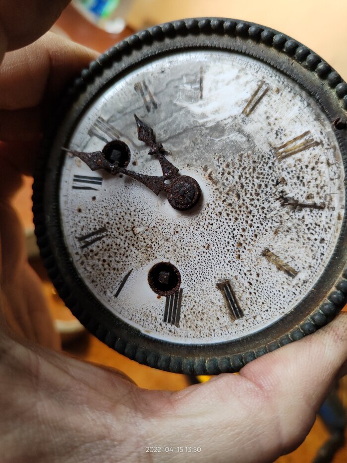 Как я уже писал, часами и их ремонтом, я занимаюсь больше сорока лет. Но, то, что я хочу показать, озадачило меня очень сильно. Французские часы, второй трети девятнадцатого века. Часы пережили пожар в доме, а после него, год лежали во влажном, неотапливаемом помещении. В результате коррозии, некоторые шестерни, просто было не вынуть из посадочных мест. После того, как механизм, двое суток полежал, целиком, в керосине, появилась возможность его разобрать. В ходе разборки выяснилось, что одна из пружин, приказала долго жить. Ну а дальше, разобранный механизм, направляется в ультразвуковую мойку и специальный раствор. Увы, заработавшись, не сделал фото самого процесса. И вот, сборка, после того, как все детали отмыты и отчищены. Родной колокольчик, от нагрева, перестал звонить. Пришлось его поменять. Также, как и маятниковый подвес - пендельфедер. Здесь он работает, вместе с системой регулировки скорости хода, системы Ахилля Броко. Вот и конечный результат работы. После всех проделанных