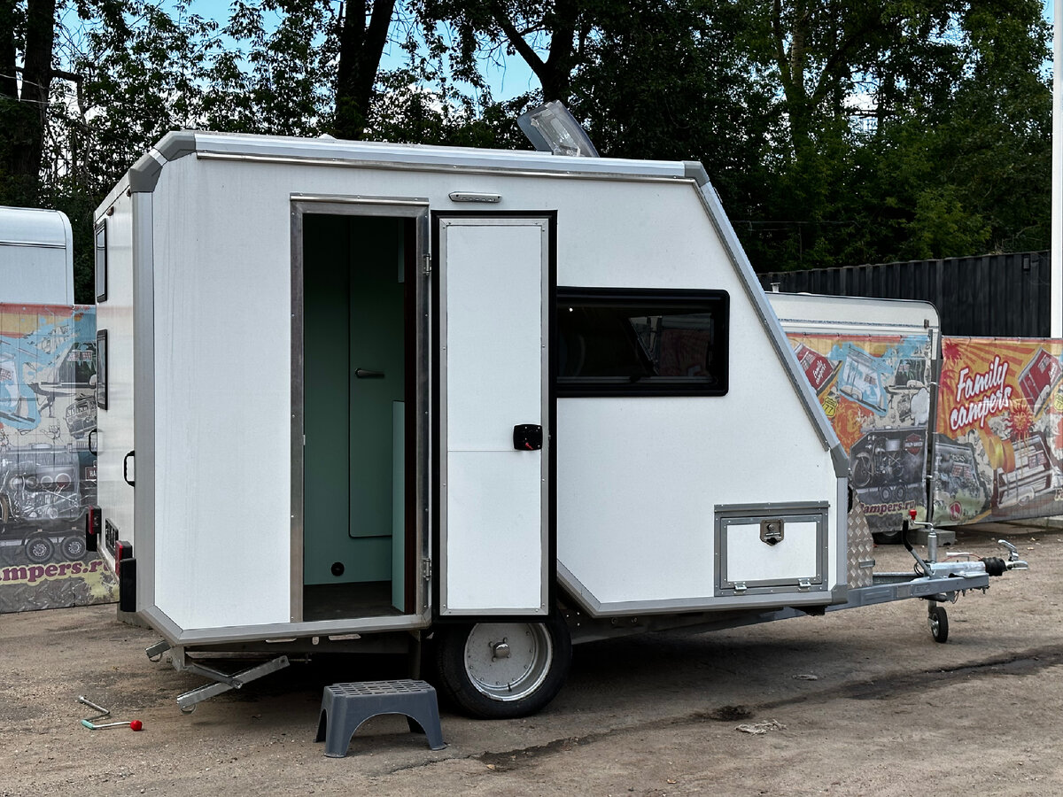 Московская компания Family Campers строит дома на колёсах в сотрудничестве с заводом прицепов «Исток». 3 года испытаний в аренде по России вскрыли все слабые стороны изделий. Теперь в результате сотен доработок получился подходящий для России караван, на который компания дает гарантию. В статье вы узнаете, что предлагает компания в своей новой модели и сколько она будет стоить. Дом на колесах "Мята" от Family Campers Особенности Спальные места Всего 4 спальных места: двухъярусная кровать размером 200 на 70 см при входе и раскладная кровать в гостиной размером 200 на 140. Двуспальная кровать трансформируется в столовую группу на четверых: подушки посередине - это спинки диванов, стол крепится к стене и стоит на складной ноге. Еще одна особенность прицепа - освещение. Тёплый свет в сочетании с приятным цветом мебели создает в доме уют. В базовую комплектацию входит встроенная газовая плита и мойка на кухне, но будущий владелец прицепа не захотел их ставить В большом выдвижном ящике пряч