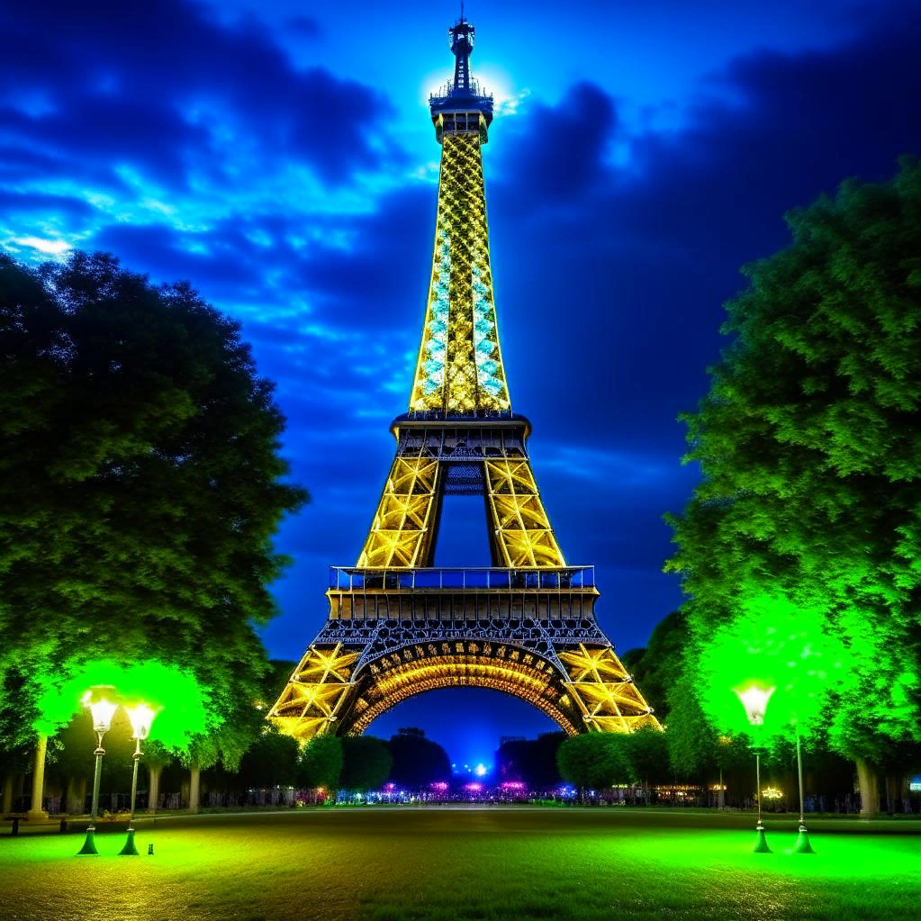 Из окна было прекрасно видно Эйфелеву башню ,горящую огнями.