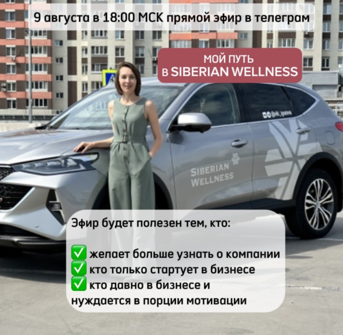 ЗДЕСЬ ПОЛУЧИТСЯ У КАЖДОГО Сегодня подниму тему про рост и развитие. Вы все прекрасно знаете, что я являюсь партнером Siberian Wellness (надеюсь, знаете😀) так как иногда я с вами про это говорю и что в нашей компании не только классный продукт, который дает отличный результат . ☝🏻Но еще и Siberian Wellness - это пространство для роста и развития. Где много возможностей: доход, путешествие, авто, жилье и так далее. А самая главная ценность компании - это люди, кто несет твердо миссию компании. 🙌🏻Миссия - оздоровление нации и выращивание лидеров, которые меняют мир вокруг себя. 👉🏻И завтра, 9 августа 18:00 по Москве, я вас приглашаю на свой эфир в телеграм, где расскажу как начался мой путь в Сибирским Здоровье, как поменялась моя жизнь и я сама. Поделюсь своими действиями, результатами. Ведь ничто иное, как история успеха другого человека позволяет иначе взглянуть на привычное, на то, что ты давно знаешь и знаком. 🤝 Мой телеграм канал прикреплен в описании профиля. Надеюсь,