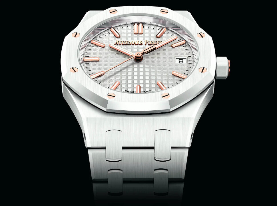 Швейцарский бренд Audemars Piguet выпустил новые часы Royal Oak в корпусе диаметром 34 мм из белой керамики. Помимо синей керамики с вечным календарем, выпущенной в прошлом году, белая керамика является одним из самых редких корпусов от AP и пользуется высоким спросом у коллекционеров. Сочетание белой керамики и серебристого циферблата с узором Grande Tapisserie и акцентами из розового золота привносит элегантную роскошь в эту культовую модель. В 22 часах из каталога AP используется черная керамика (включая Code 11:59). Но в линейке всего четыре белых керамических модели — две из них представляют собой грандиозные усложнения, а одна — это выпуск Only Watch в этом году. Белого керамического вечного календаря также больше нет в списке. Так что это единственная модель часов в этом корпусе, и достать ее, безусловно, будет непросто. Стоимость составляет $53000. Модель Royal Oak Selfwinding 34 mm представлена в корпусе из белой керамики диаметром 34 мм, толщиной 8,8 мм со встроенным браслето