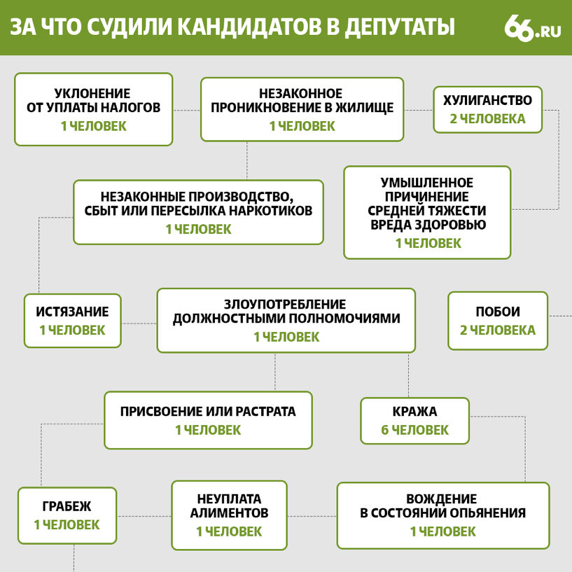 В Свердловской области проходит 11 избирательных кампаний различных уровней. По данным избиркома Свердловской области, в них решили поучаствовать 15 человек, или 17 кандидатов (двое из них идут на выборы в думу Екатеринбурга и по списку, и по одномандатным округам, поэтому система выдает 17 кандидатов), с судимостями.