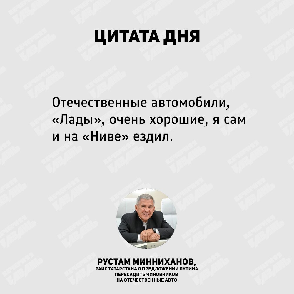 В ответ на вопрос корреспондента «Вечерки» о том, будет ли он следить за исполнением указания о езде чиновниками на отечественных автомобилях, глава Татарстана сообщил, что исполнять указания Путина должны все.
