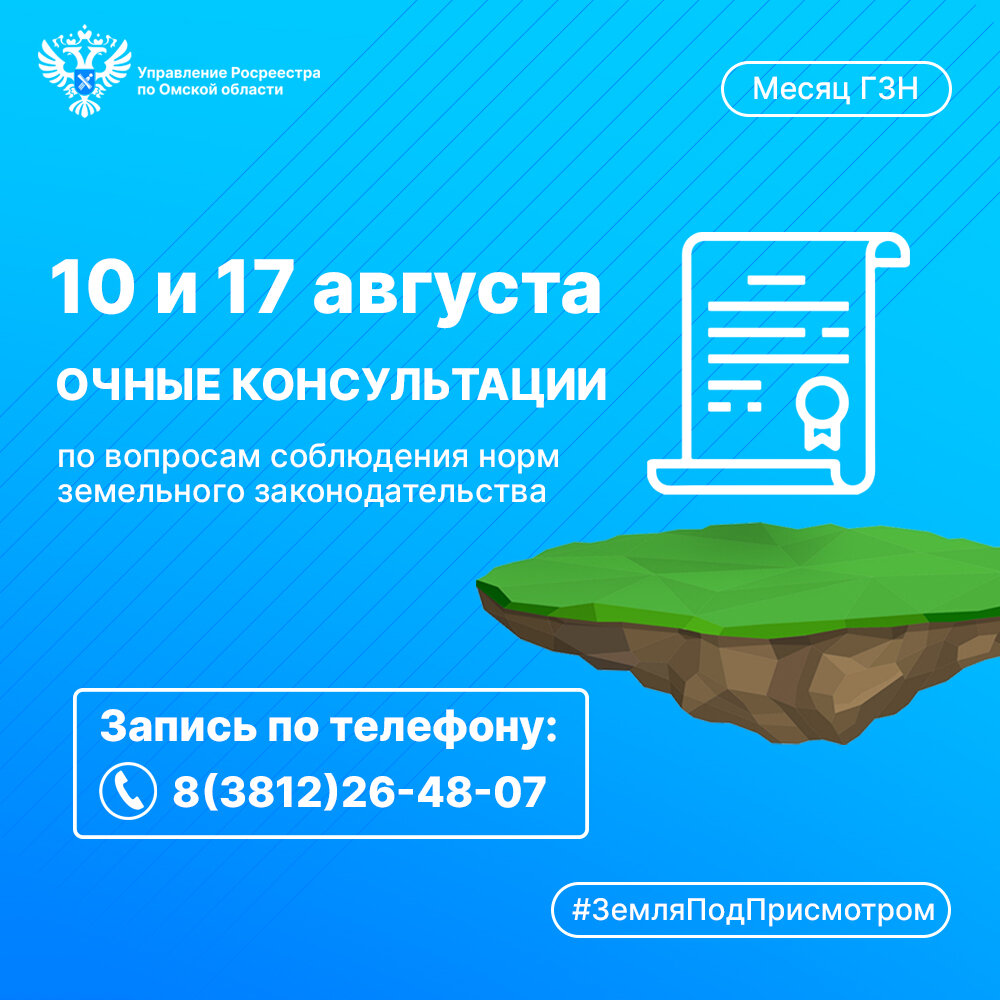 В рамках 15-летия ведомства и месяца государственного земельного надзора, 10 и 17 августа 2023 года в омском Росреестре пройдут дни очных консультаций для граждан по вопросам соблюдения норм земельного законодательства. Собственники земельных участков, у которых сложились спорные ситуации с соседями и возникли иные вопросы, требующие немедленного разрешения, могут обсудить их со специалистами отдела государственного земельного надзора Управления Росреестра по Омской области, предварительно записавшись по телефону: 8 (3812) 26-48-08. Дни консультаций состоятся 10 и 17 августа 2023 года по адресу: г. Омск, ул. Красный Путь, д. 3. #Росреестр #РосреестрОмск #МесяцГЗН #ДниКонсультаций #ЗемляПодПрисмотром #КалендарьБольшогоРосреестра #Росреестру15лет Пресс-служба Управления Росреестра по Омской области