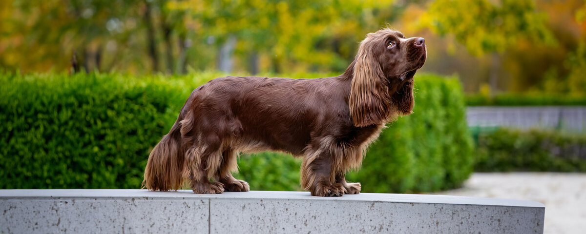 Суссекс-спаниель - небольшая коренастая собака с густой короткой шерстью. Представители породы спокойны, практически полностью лишены агрессии, поэтому прекрасно подойдут для семей с детьми. Однако такому питомцу нужна своевременная социализация, возможно, придется пройти хотя бы минимальный курс дрессировки.