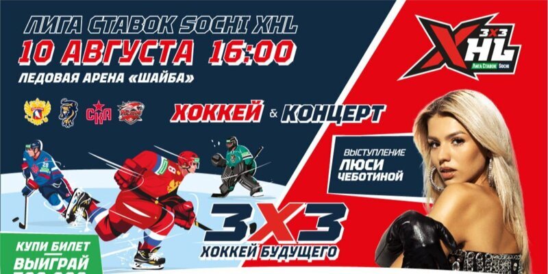 10 августа в Сириусе состоится уникальный турнир по хоккею в формате «3 на 3», который также называют «хоккеем будущего» — «Чемпионат ФХР — 3×3 — Лига Ставок Sochi XHL». Зрителей ждёт насыщенный эмоциями день и четыре матча, в которых примут участие сборная России, СКА, «Сочи» и «Ростов». Кроме того, прямо на арене состоится розыгрыш ценных призов, в котором примут участие все обладатели билетов на трибуны, а также зажигательный концерт Люси Чеботиной, исполнительницы хита «Солнце Монако». Букмекерская компания «Лига Ставок» является титульным партнером турнира уже не первый раз. Компания активно поддерживает перспективный вид спорта, наравне с классическим хоккеем. Начало турнира в 16:00, он пройдет на ледовой арене «Шайба». Билеты можно приобрести по ссылке.