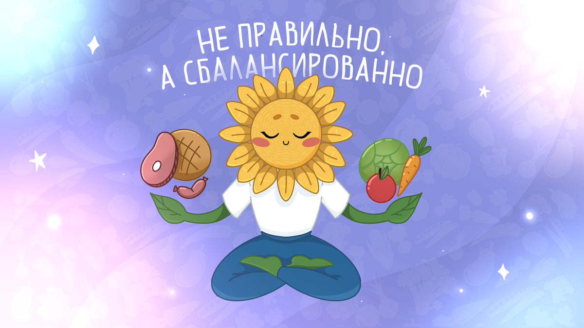Подсолнух — главный эксперт клуба качественных продуктов «Качество в подарок». Долгое время он старался придерживаться концепции «правильного питания», потому что это было популярно. Однако позже Подсолнух осознал, что правильное питание не имеет ничего общего со здоровым питанием. Что такое «правильное питание»? Правильное питание подразумевает строго ограниченный рацион, который состоит из очень небольшого набора «полезных» продуктов. В список того, что разрешено, входит: овсянка, гречка, бурый и дикий рис, отруби, рыба, морепродукты и индейка. Готовят разрешенные продукты особым способом: на пару или в духовке. Жареные блюда — табу. Правда, иногда у него случались чит-милы: дни, когда он ел все подряд и не контролировал себя. За раз Подсолнух мог съесть целое ведерко мороженого, несколько пачек чипсов и пару шоколадок. Чувствовал он себя после таких дней плохо: и физически, и морально. Как правильное питание отражается на организме? Фигура у Подсолнуха стала подтянутой и сухой: