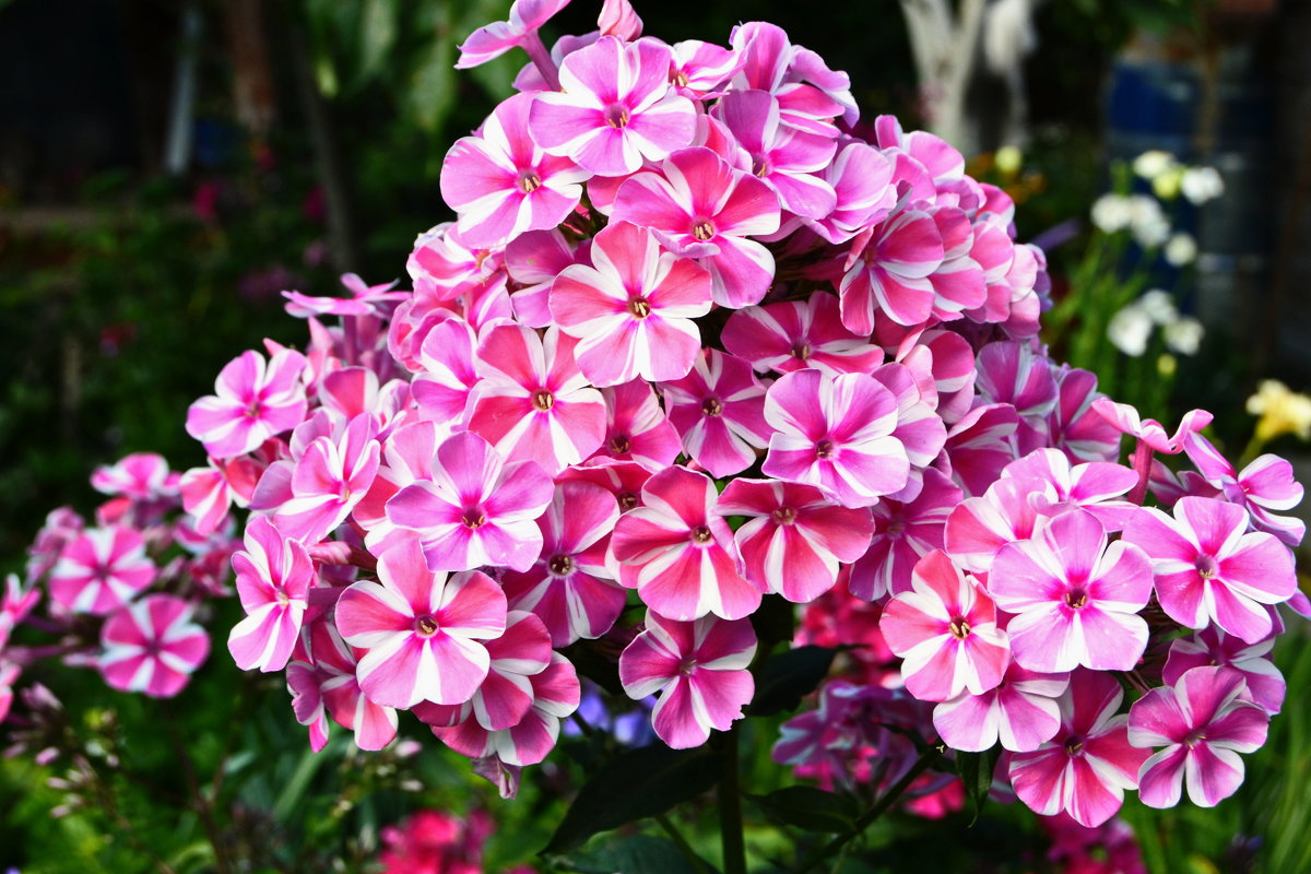 Вы любите флоксы? Я просто обожаю эти цветы, которые своей яркостью внесут жизнерадостные ноты даже в самую неудачную погоду. У нас просто третью неделю идут дожди, так что для меня вопрос погоды - больной. Мы мокли почти весь июль, притом заливало так, что я не могла проехать на участок, потом две недели стояла нормальная погода, а теперь опять... Все цветы стоят печальные, даже розы - мало кому нравится, когда постоянно льется вода. Лепестки лежат на земле, побеги тоже, и только флоксы чувствуют себя прекрасно. Как стояли, так и стоят совершенно не реагируя на природные катаклизмы. Мало того, что это очень красивые цветы, которые заметны издали, так они еще и не требуют сложного ухода. Если вы высадите флоксы на подходящее место (солнечное и с хорошей рыхлой почвой), они будут прекрасно себя чувствовать, и все, что вам придется делать - это периодически их поливать и подкармливать. Конечно, еще нужно убирать сорняки - любые цветы выглядят лучше, когда нет травы, но высоким флоксам о