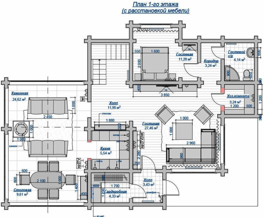 Данный дом находится в ближайшем Подмосковье и сделан из бруса. Хозяевами этого прекрасного домика является семейная пара "в возрасте", которые купили этот дом и захотели обустроить его на свой вкус. Главная особенность нового интерьера в том, что почти вся мебель винтажная и антикварная. Проект Перед ремонтом в доме произошла перепланировка пространства. В конечном варианте первый этаж заняли общественные зоны, такие как — кухня, гостиная, столовая, санузел, гостевая, гардеробная и техн. помещение. Кухня получилась небольшая, но в меру функциональная. Гарнитур выбрали П-образный, так как для такого помещения это максимально рациональная форма. От фартука отказались в пользу моющейся краски. Напольное покрытие выложено плиткой. Недалеко от кухни расположилась полноценная столовая группа с большим обеденным столом. Между гостиной и столовой появился американский сундук 1930-х годов. Так же на первом этаже расположились две зоны отдыха. Стены здесь покрасили в сине-голубой оттенок. З